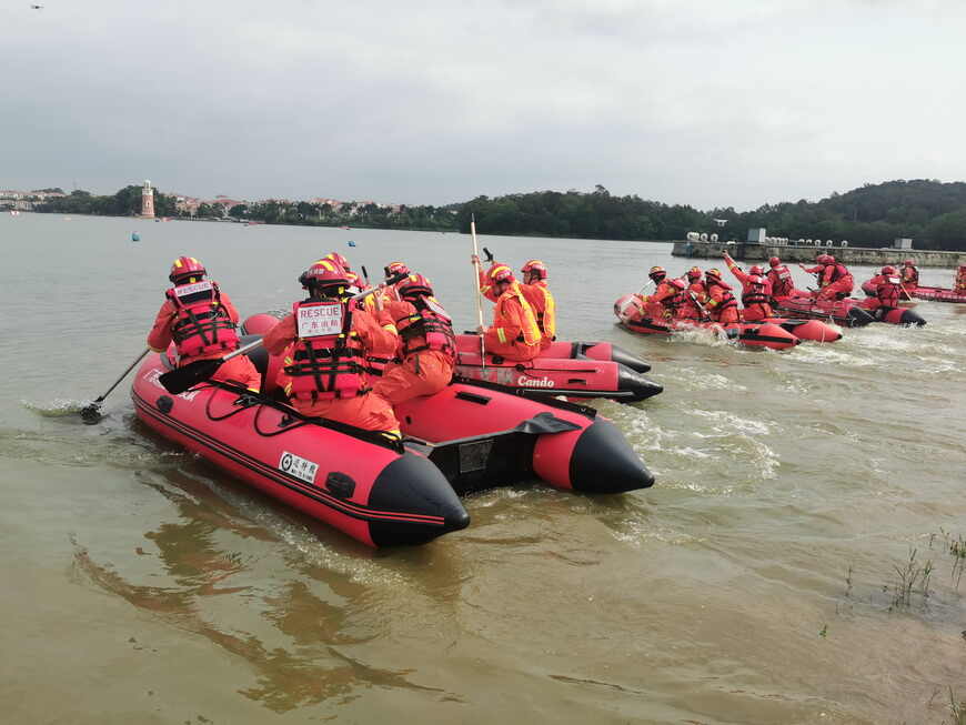 据广东省消防救援总队介绍,此次实战演练,结合抗洪抢险救援任务点多面广、艰巨性和复杂性的实际特点,通过模拟真实复杂环境,紧贴实战科学设置演练科目,围绕橡皮艇组装、无动力划艇、0型快速救援、翻舟自救、岸际救援、岸际活饵救援、无人机投放、救生抛投器使用、孤岛救援、综合演练等10个科目进行展开,有效检验了消防救援队伍快速响应、出动集结、战斗行动和战勤保障等多环节应对洪涝灾害、抗击台风的实战能力。