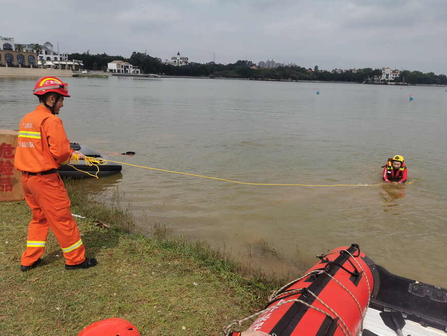 为积极应对洪涝灾害事故,提升消防救援队伍水域救援实战能力,最大限度地减少灾害事故造成的损失,3月30日,广东省消防救援总队在佛山市南海区赤坎水库举行水域救援实战拉动演练。此次演练共调派广州、佛山、总队机动支队以及地方救援力量蓝天救援队、菠萝救援队共180人参与。