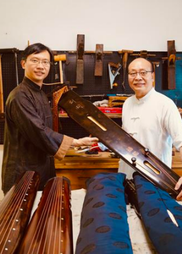 作为目前广东省年纪最老的岭南派古琴家,区君虹在从小就对中国传统文化充满热爱,同时也将这份感情耳濡目染带给他的儿子——区宏山。区宏山13岁就开始走上古琴修复之路,80后的他现在已经是“古琴艺术(岭南派)”广州市非物质文化遗产代表性传承人,“我从小听着父亲弹琴、看着父亲修复和斫制古琴就特别感兴趣,于是我开始做些小配件,直到能独立完成一床古琴的修复和斫制,其实是一个循序渐进的熏染过程。”区宏山说:“‘医治’古琴也早已成为我生命中很重要的一部分。如果一床老琴既能够保持外观完好又能演奏,它就是很完美的穿越声音的文物,是能够一直流传下去的,这也是造福后人的。”
