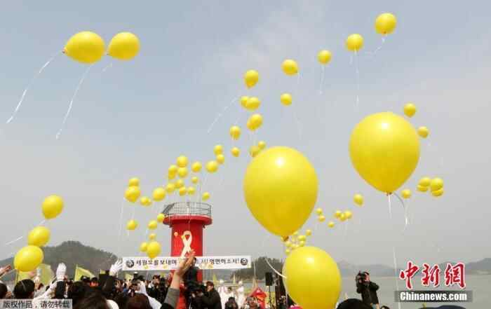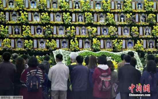资料图:当地时间2017年3月28日,韩国珍岛,民众悼念“世越号”遇难者。