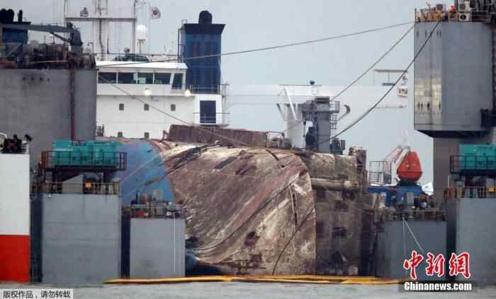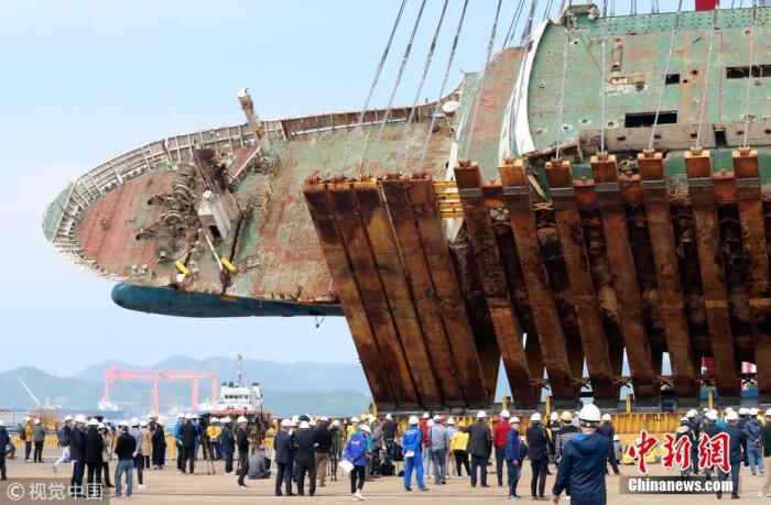 资料图:当地时间2017年3月25日,韩国珍岛,“世越号”打捞现场。