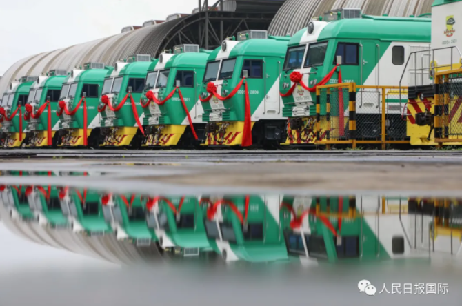 2020年7月21日,江苏常州经济开发区,中车戚墅堰机车有限公司内,出口“一带一路”沿线国家尼日利亚的机车整装待发。史康摄/人民视觉