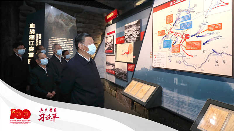 2021年4月25日,正在广西考察的习近平参观红军长征湘江战役纪念馆。