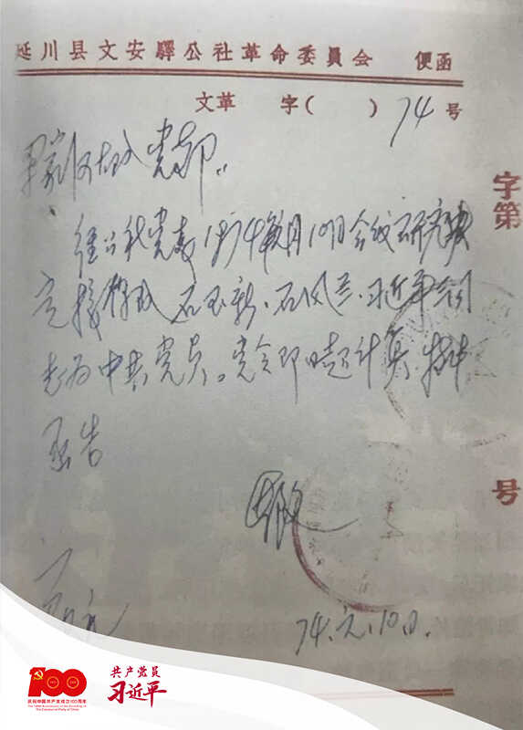 1974年1月10日,公社党委终于批准了他的入党申请。20岁的习近平,在先后写了10份申请书、多次递交组织后,终于成为中国共产党的一员。