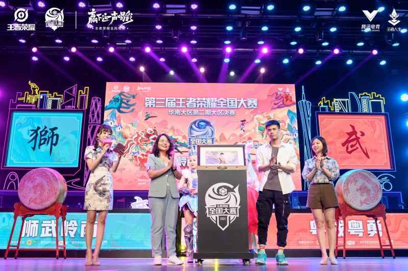 本次华南赛区以“狮武岭南,粤战粤勇”为主题,意在鼓舞战队能够像醒狮般霸气四射。伴随精彩的狮武艺术开场表演,本次大区联赛的荣誉信物也在舞台亮相。信物选取岭南地区竞技文化代表人物——李小龙,也是王者周年庆精品皮肤作为底稿,邀请粤绣代表性传承人孙天诚制作。本次大赛的冠军战队将携带象征岭南荣誉专属信物,于6月出征武汉总决赛。