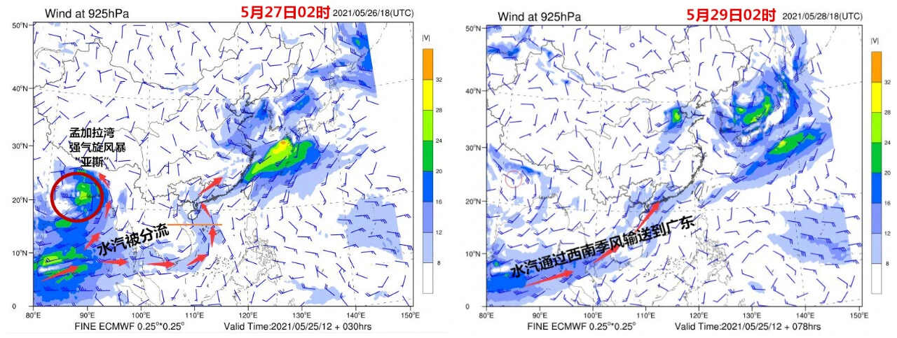 “亚斯”在孟加拉湾的“搅局”,预计会助推广东“龙舟水”雨势 新浪微博“广东天气”制图