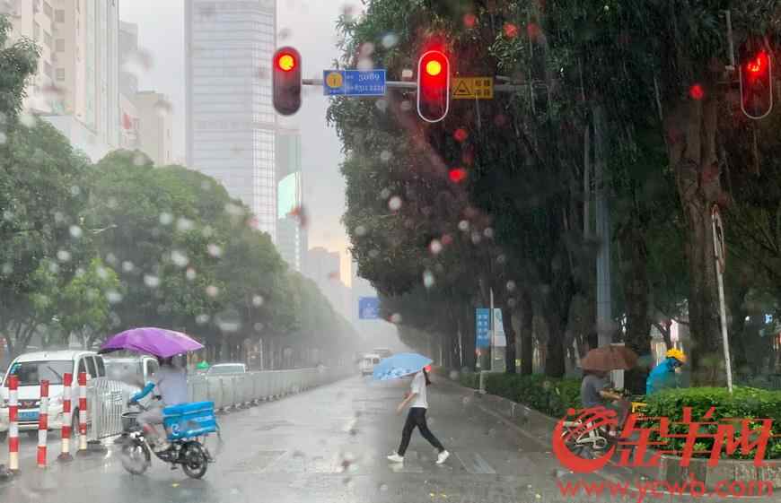 5月26日中午,突如其来的降雨影响广州体育西路,市民措手不及 梁怿韬 摄