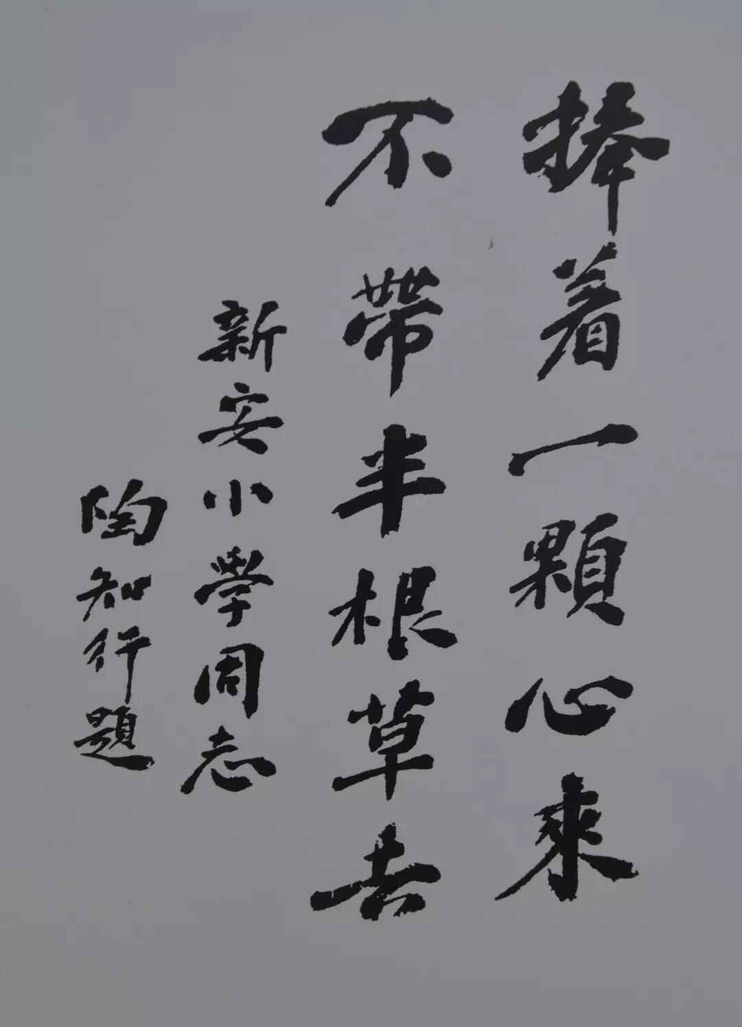 (陶行知为新安的师生题写的一副对联 图片来源:淮安市新安小学微信公号)