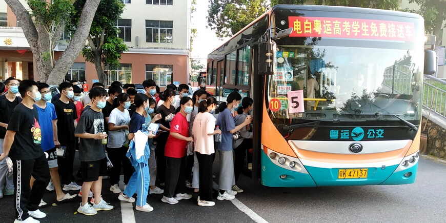 茂名电白高考考生搭乘粤运公交前往考点 陈广杰 摄