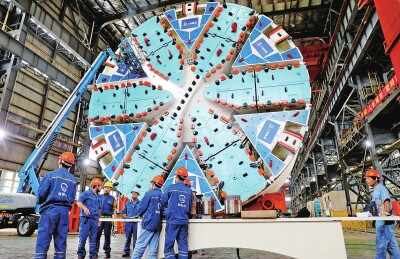 2020年,由隧道股份上海隧道工程有限公司自主研发制造的超大直径盾构机“骐跃”在上海浦东成功调试下线。“骐跃”整机总重约为3200吨,总长约为99米,其中主机长度约为16米,刀盘切削直径达14.05米。新华社记者 方喆摄