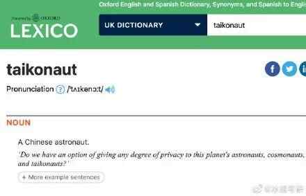 据了解,词根taiko出自“太空”的拼音,目前该词也被牛津词典收录,意思为Chinese astronaut(中国宇航员)。
