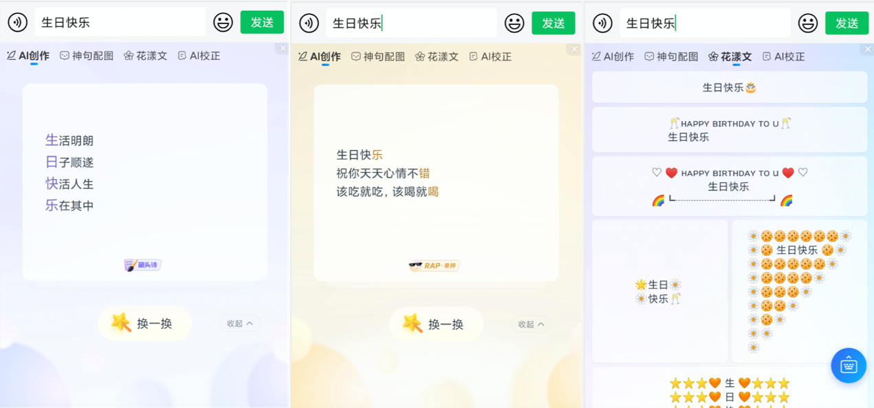 随着社交方式的改变,如何游刃有余地应对各类群聊,成为许多年轻人的一大困扰。因此百度输入法再次升级“AI助聊”功能,在智能帮写、智能纠错和智能预测功能基础上,带来了AI创作、神句配图、花漾字、AI校对四大惊喜功能。