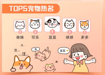 去年以来,已经有数百万用户在为宠物投保宠物险时为宠物建立了“身份证”。数据显示,豆豆、可乐、球球是全国最流行的宠物名字。其中,上海用户最爱为宠物取名“咪咪”,北京最爱叫“豆豆”、杭州最爱叫“可乐”……在所有建档宠物里,可乐、布丁、汤圆、奶茶等食物类的宠物名字,占比达30%。