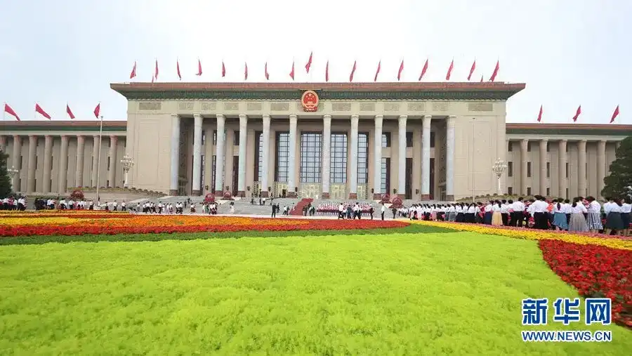 6月29日上午10时,“七一勋章”颁授仪式在人民大会堂隆重举行。这是当天的人民大会堂外景。新华网 陈杰 摄