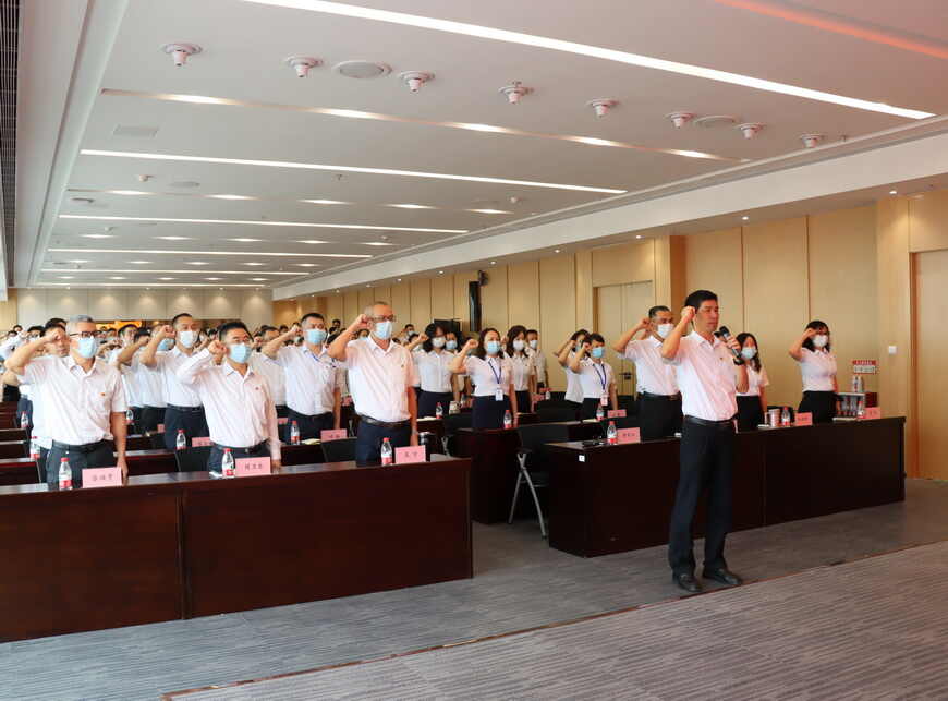 在观看庆祝中国共产党成立100周年大会直播时,该集团的党员和入党积极分子关注习近平总书记有关推动物质文明、政治文明、精神文明、社会文明、生态文明协调发展,坚持在发展中保障和改善民生,坚持人与自然和谐共生的讲话内容。在观看直播结束后,全体党员一起高举右手,面对鲜红的党旗,重温入党誓词。