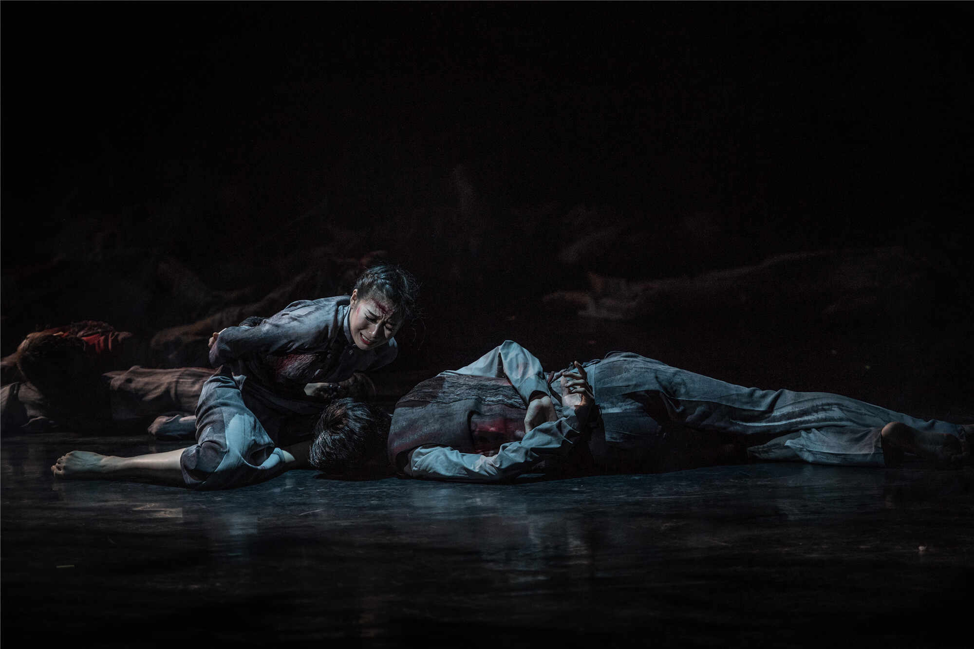 在人物的塑造、舞段的衔接和场景的呈现上,《旗帜》的表现手法也是独具新意。它将每个主要人物构造成相对独立篇章,使之与人物心境穿插融合,营造出多线齐头并进又相承递进、相互映射的舞台效果,将人物形象塑造得更加饱满。在不断变化的音乐律动和不断叠加的音乐层次中,芭蕾语汇与民族气节融为一体,以最直接有力的方式捕捉呈现人物情感最强爆发点和心理矛盾的最敏感处。