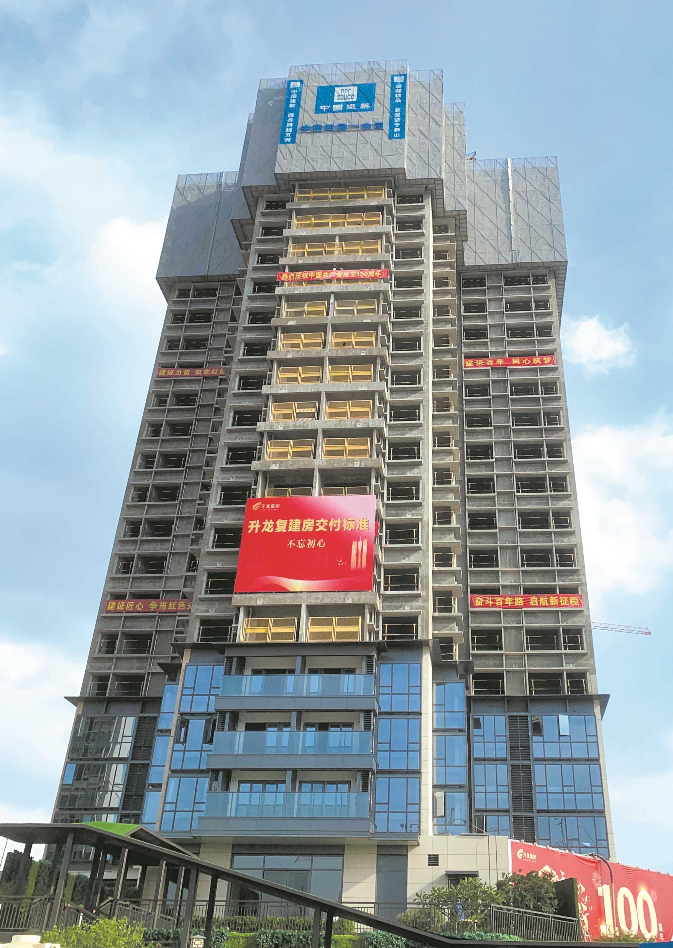 “这些复建房对标的是高端商品住宅的品质,不论是户型设计还是装修标准都非常拿得出手。”站在已经建至22层、颇具“高端物业气质”的一栋复建房楼下,汤村城市更新项目的负责人这样介绍。顺着楼宇仰望,红红的宣传牌上“升龙复建房交付标准”和“不忘初心”两行字清晰可见。
