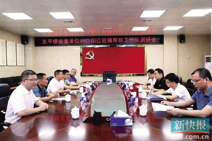“希望大家都能好好梳理,依据东平镇的资源特点提前谋划好产业发展……”阳江市阳东区人民政府副区长陈必润发言时,围坐会议室里的参会人员或凝神细听、或侧耳记录,一方会场不大、布置简单,然而与会人员的认真专注和透露而出的严肃庄重气氛暗示出这场会议的分量:这是省直、中直单位对口阳江驻东平镇帮扶工作队见面会,也是打赢脱贫攻坚战、各级乡村振兴局成立后帮扶双方的头一次正式会面,省直、中直驻镇人员代表的到来也意味着驻镇帮镇扶村工作队正式进驻阳江市阳东区东平镇。
