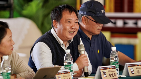 西藏自治区建筑设计研究院总建筑师、西藏佛协副秘书长、国务院特殊津贴专家、西藏非物质文化遗产专家木雅·曲吉建才发言
