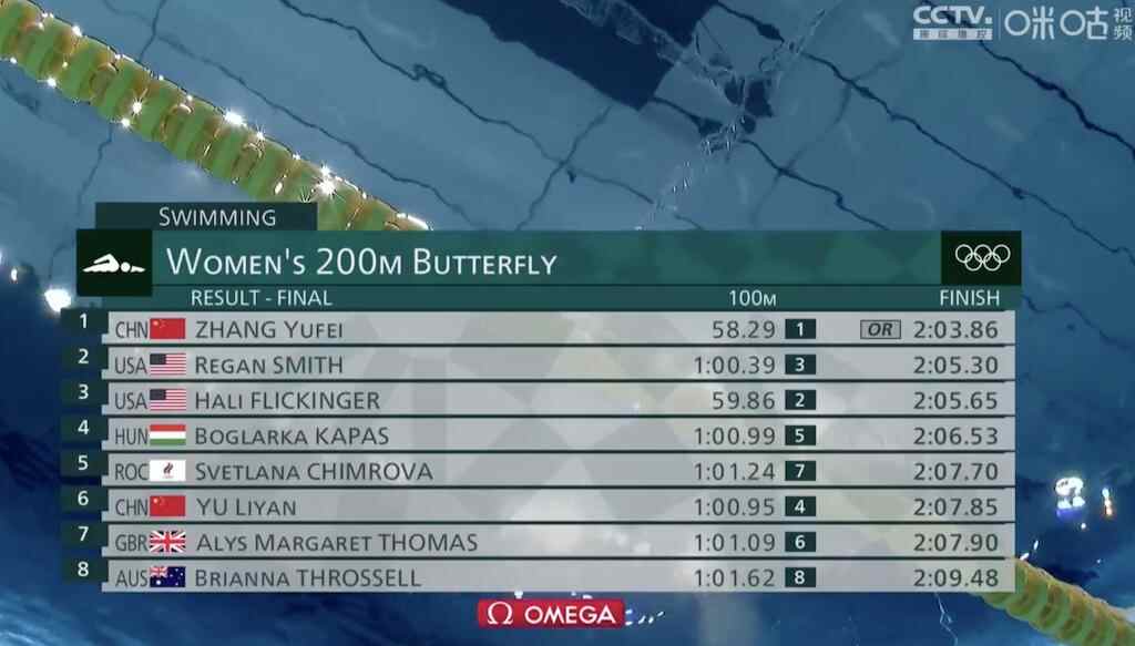 7月29日上午,东京奥运女子200米蝶泳决赛进行,首次参加奥运会的深圳健儿俞李妍在第2泳道出发,以2 分07秒85获得第六名。另一中国健儿张雨霏以2分03秒86夺冠,创造了新的奥运纪录。