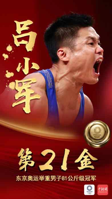 中新网北京7月31日电 北京时间31日,在东京奥运会男子举重81公斤级决赛中,中国选手吕小军以抓举170公斤、挺举204公斤、总成绩374公斤的成绩夺得冠军,抓举、挺举、总成绩均打破奥运纪录。这是中国代表团本届奥运会的第21金。