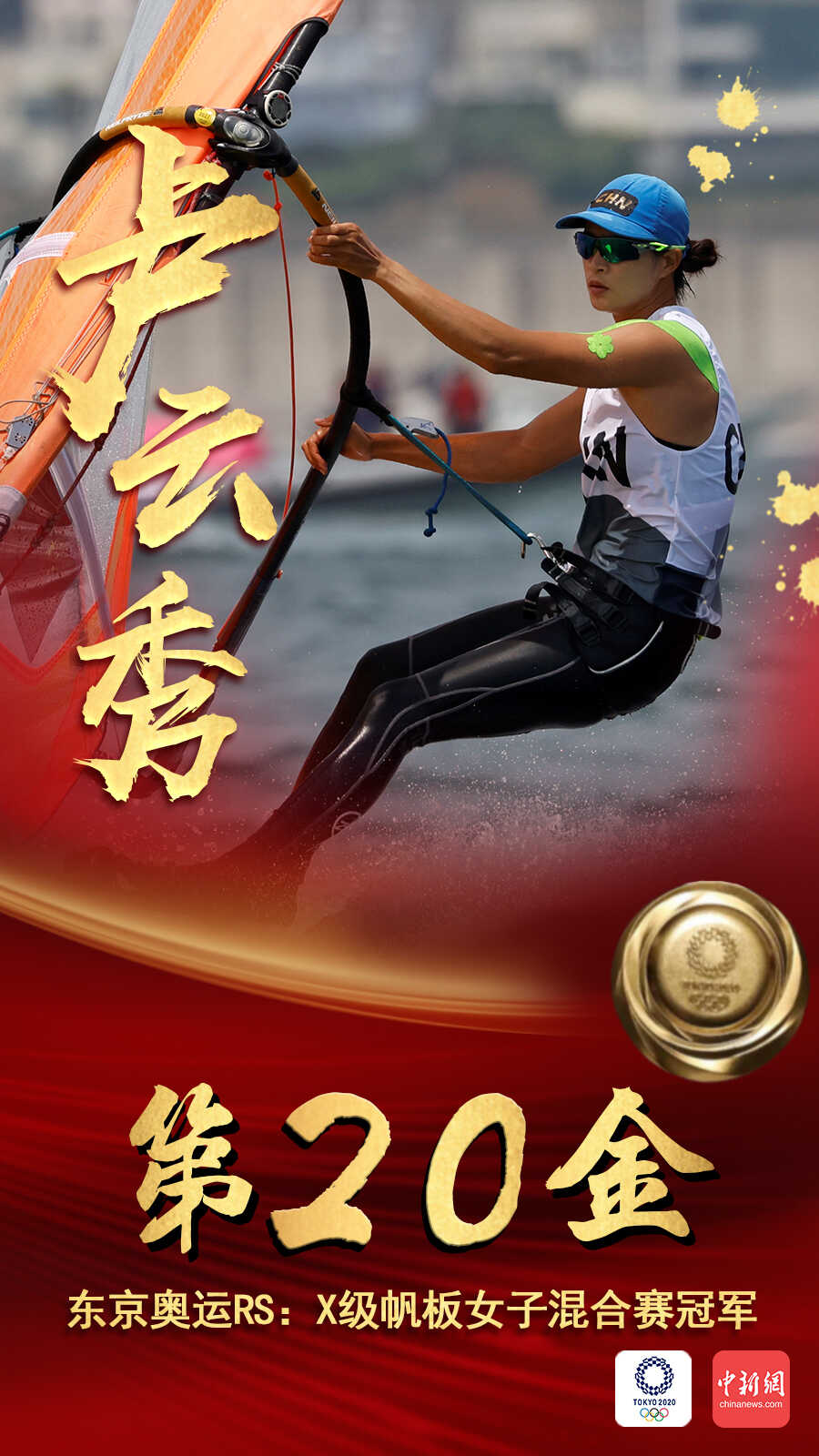中新网7月31日电 北京时间7月31日,在东京奥运会女子帆板RS:X级奖牌赛中,中国选手卢云秀发挥出色,获得该项目金牌。这也是中国代表团在本届奥运会上的第20枚金牌。
