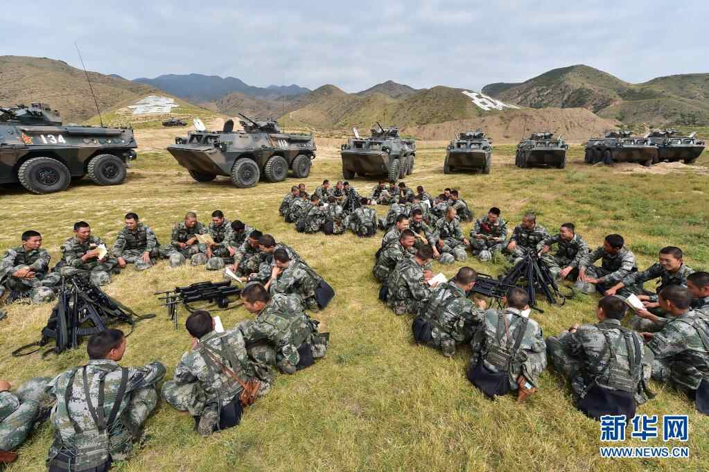 陆军某部“大功三连”官兵利用训练间隙组织理论学习(2016年9月21日摄)。新华社发(原俊敏 摄)