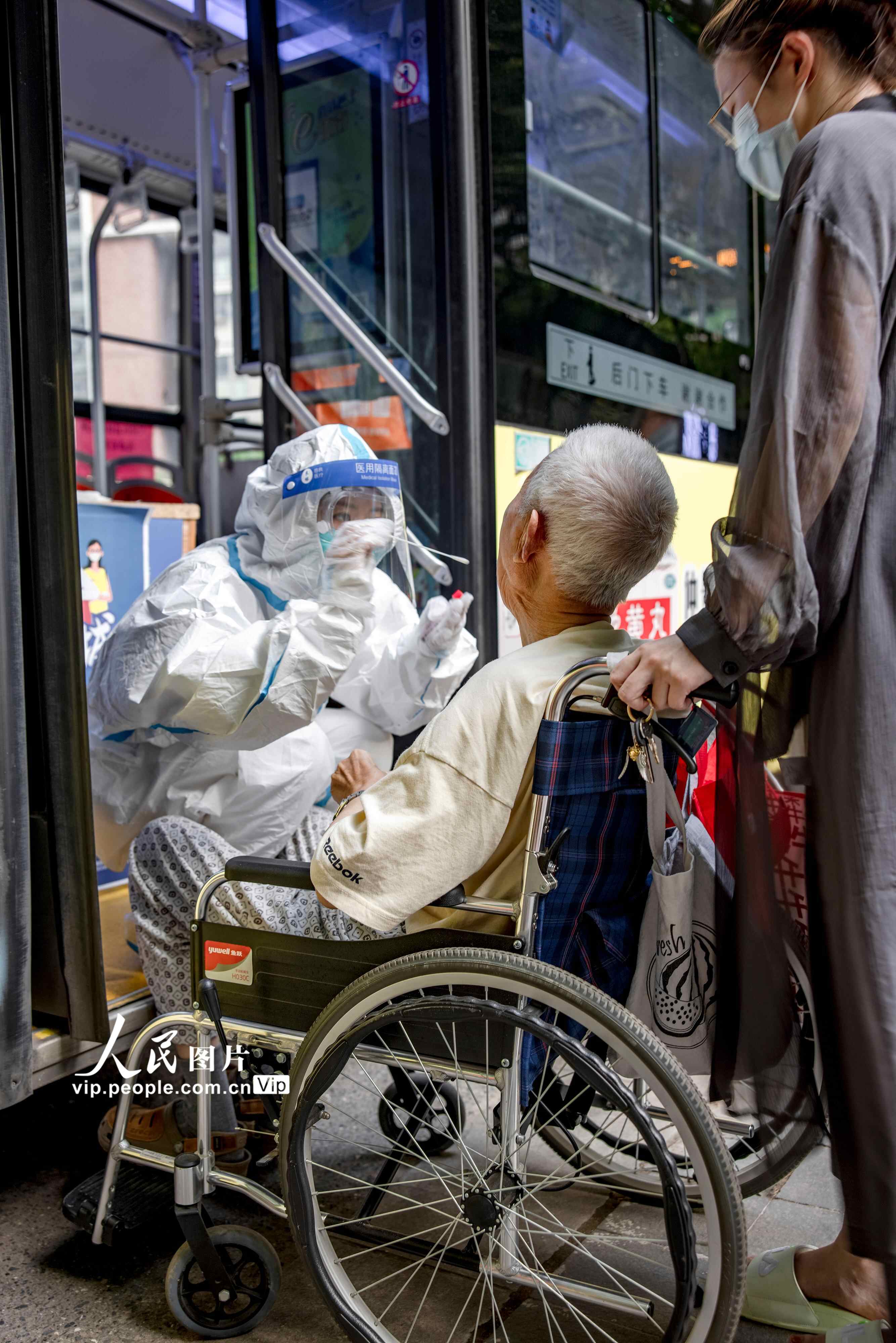 2021年7月31日,南京市建邺区组织流动核酸采样车分赴各街道社区,对行动不便的老人和未能及时赶往第三次检测点的人员,进行上门采样,确保第三次全民核酸采样一个都不少。阮忠摄(人民图片网)
