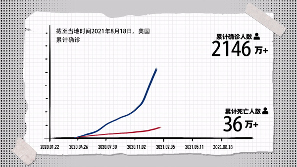 截至当地时间2021年8月18日,美国累计确诊病例数超3700万例,累计死亡病例数超过62万例,两项数据均居世界首位。