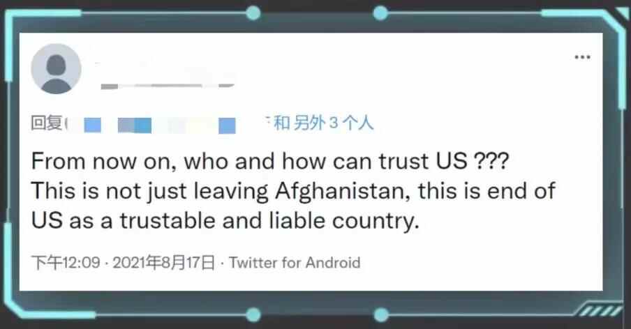 ▲ 有网友发推文质问,从现在起,谁还会信任美国?要如何信任美国?