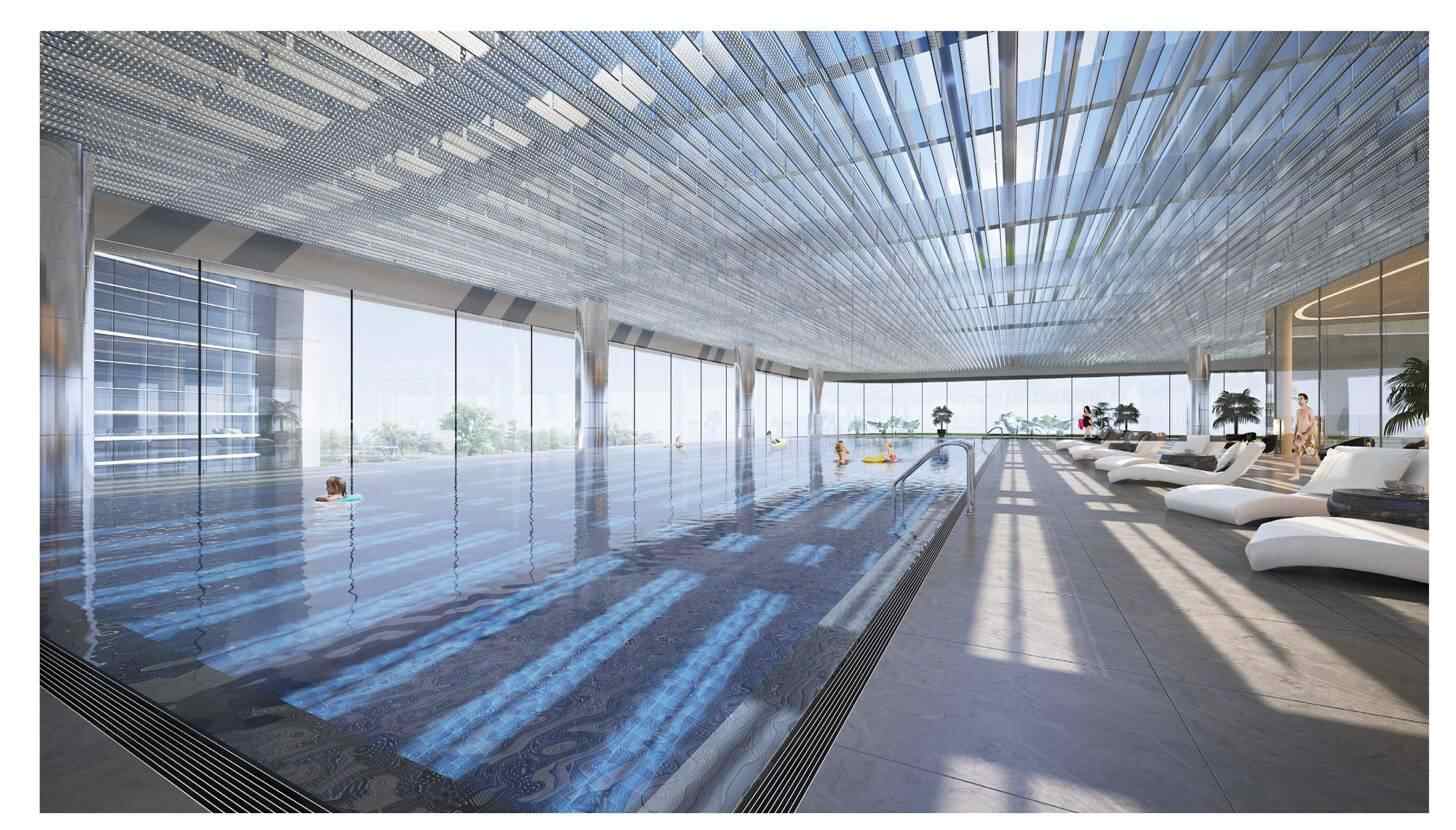 据了解,酒店主体建筑分为塔楼及裙楼两部分。塔楼建筑高146米,1-3层为酒店公共区域,客房主要分布在4-14层,其中豪华客房270间,每间客房面积为40-80平方米不等,16-30层为特色公寓;裙楼1-5层为酒店配套用房,配套有中餐厅、宴会厅、会议室、健身房、室内游泳池。