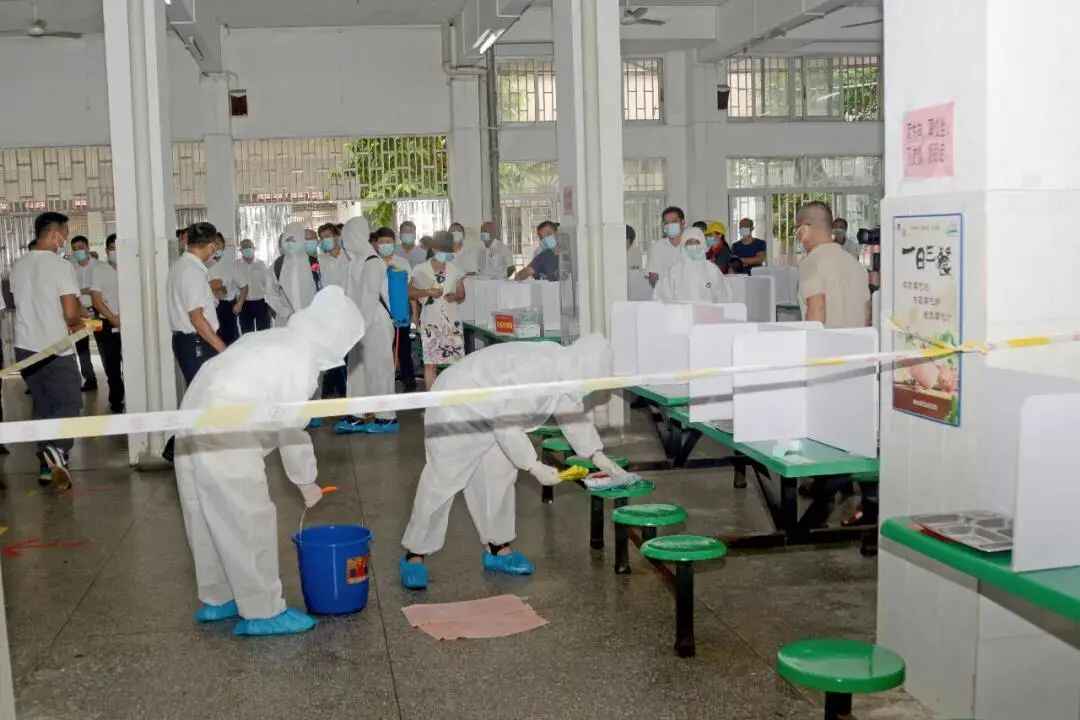 8月24日,江门台山市学校秋季开学疫情防控应急演练在鹏权中学举行,演练分四个情景,对“进入校园”“食堂就餐”“课室上课”“大规模核酸筛查”等突发情况进行现场模拟演练。