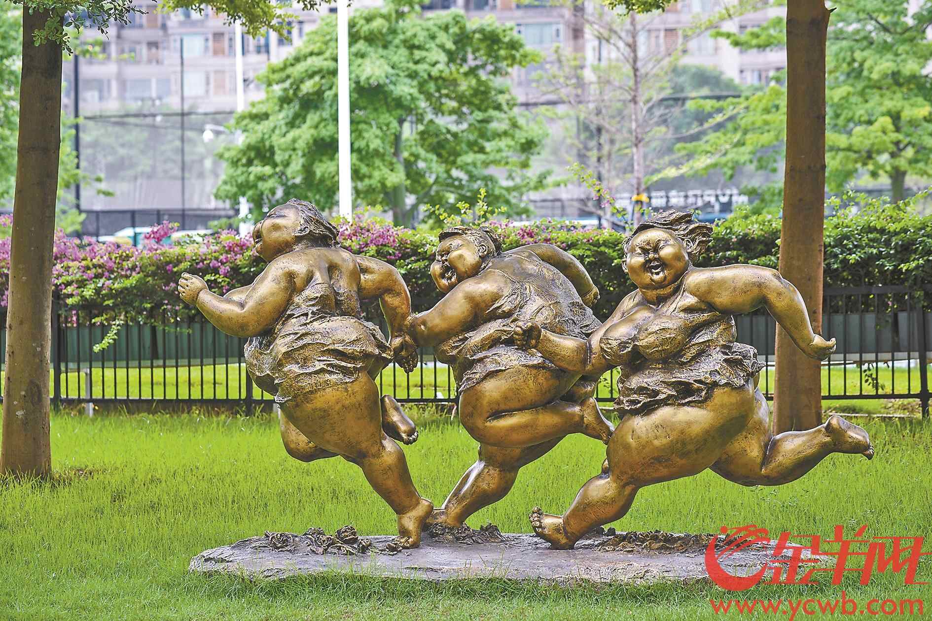 其实,肥女人的形象并非许鸿飞首创,但如今在雕塑界,说起“肥女”,就能想到许鸿飞,这是为什么?许鸿飞将此归结为“坚持”二字。20多年来,许鸿飞坚持以“肥女”为主人公,不断丰富她(们)的形象:她(们)时而奔跑,时而骑车,时而与情人拥吻,时而与孩子玩闹,不曾改变的是她(们)身上鲜活欢乐的神态,“‘肥女’就像我们的街坊邻居、我们遇到的路人,那种肢体上的亲切感使得她(们)更加容易将快乐传递给人们。”许鸿飞表示,海珠区这次将他的五件作品放在广州塔旁碧道上,正是希望将广州的快乐和艺术传递更远。