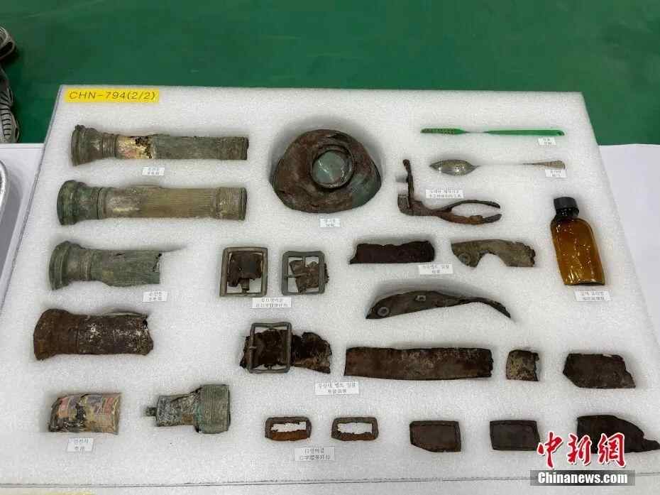 据韩方遗骸挖掘团相关负责人介绍,此次移交的志愿军烈士遗骸发掘自2019-2020年,发掘地点位于涟川、铁原、华川、洪川、义王和朝韩非军事区等六个地区,包括109具中国人民志愿军遗骸,以及1226件相关遗物。