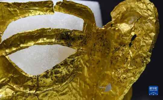 这是在四川省文物考古研究院三星堆考古研究所拍摄的三星堆遗址3号“祭祀坑”出土的金面具(9月2日摄)。新华社记者 王曦 摄
