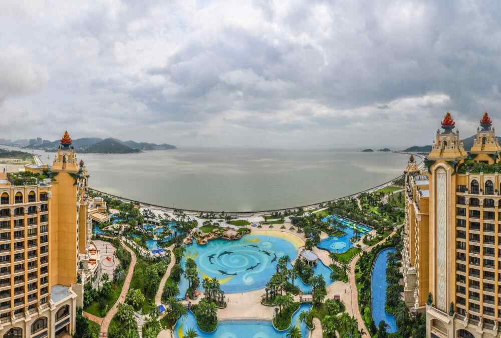 这是位于横琴国际休闲旅游岛的珠海长隆海琴湾酒店海景客房和泳池(2019年4月19日摄)。新华社记者 刘大伟 摄