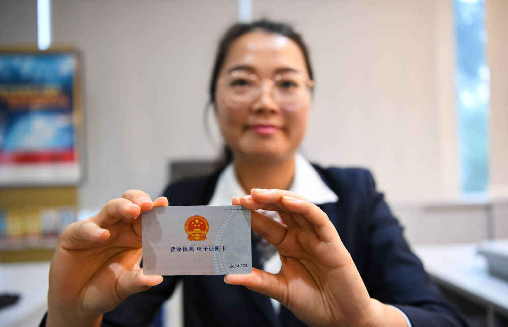 中国银行横琴分行工作人员展示商事主体电子证照银行卡(2018年11月15日摄)。新华社记者 邓华 摄