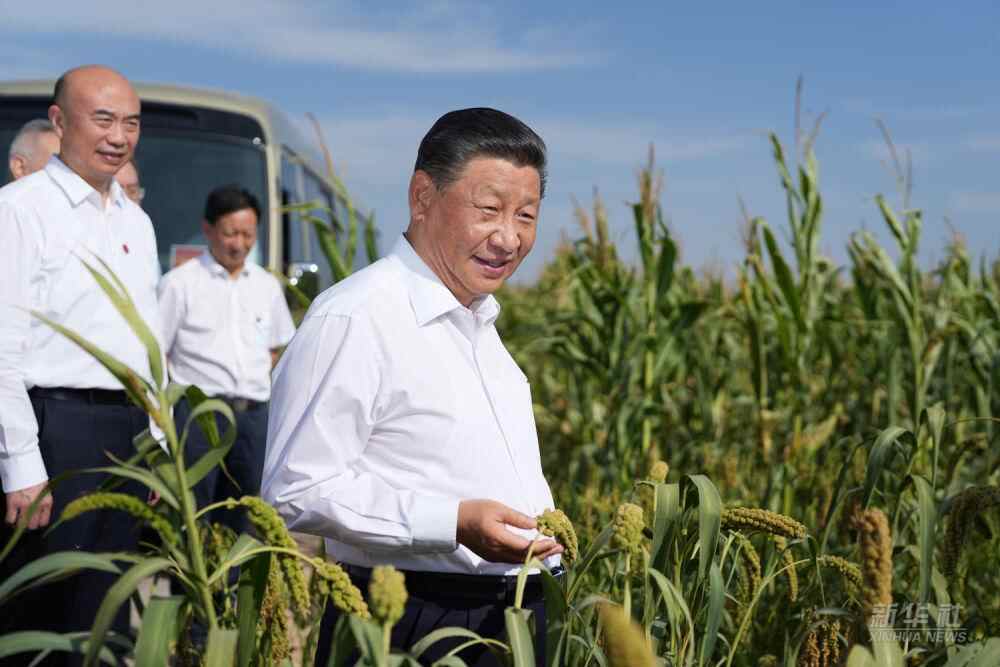 △2021年9月13日至14日,习近平在陕西省榆林市考察。这是13日下午,习近平在米脂县银州街道高西沟村临时下车,察看粮食作物长势。