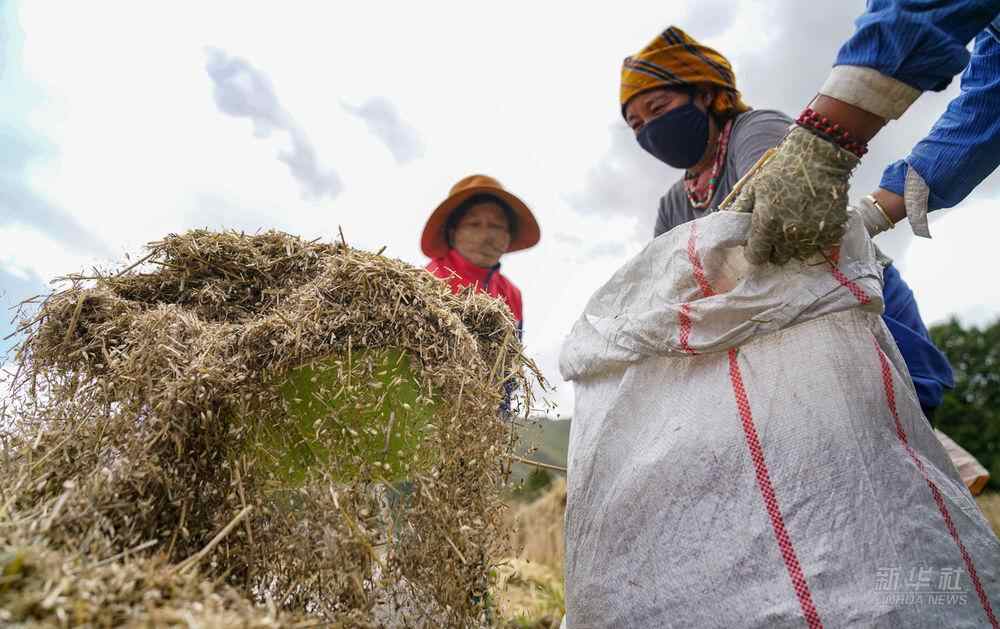 △拉萨市达孜区克日村的农民在收获青稞(2021年9月6日摄)。