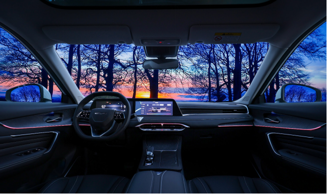 智感座舱方面,东风日产启辰大V的24英寸一体式大联屏、64色极光氛围灯同级领先。配以简约流畅的设计风格打造的一体式中控台。
