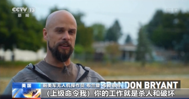 布兰登·布赖恩特:“(上级命令我)你的工作就是杀人和破坏,美军无人机操作员都是在刚刚高中毕业的男女生中招募。他们并没有丰富的社会经历,基本上也就是电子游戏玩家。但经过四个月训练,他们就可以决定人的生死。”