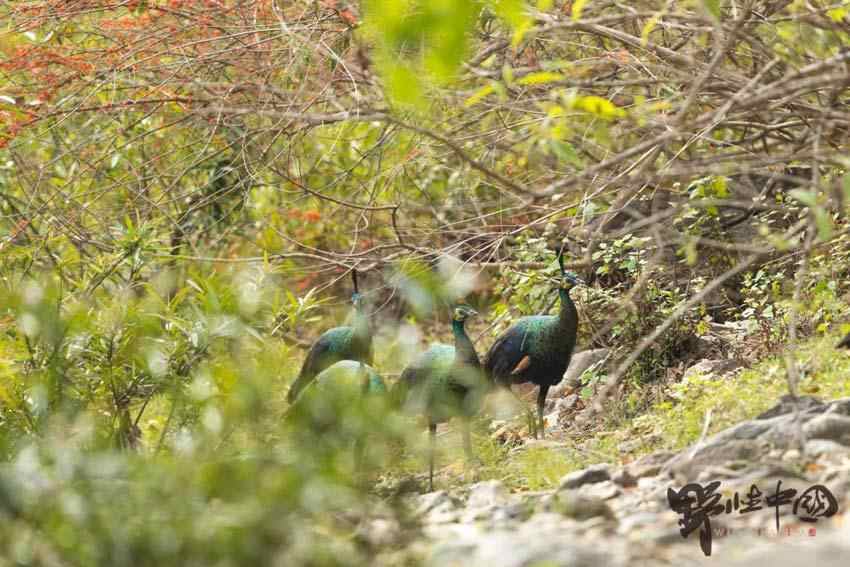 每年的二三月份,是绿孔雀的“恋爱”季,雄孔雀在这个时候会通过鸣叫的方式相互确定各自的领域,发出“嘎——喔、嘎——喔”的声音来吸引雌孔雀们。所以此时的清晨和傍晚,时常会听到雄性孔雀在河谷附近鸣叫。