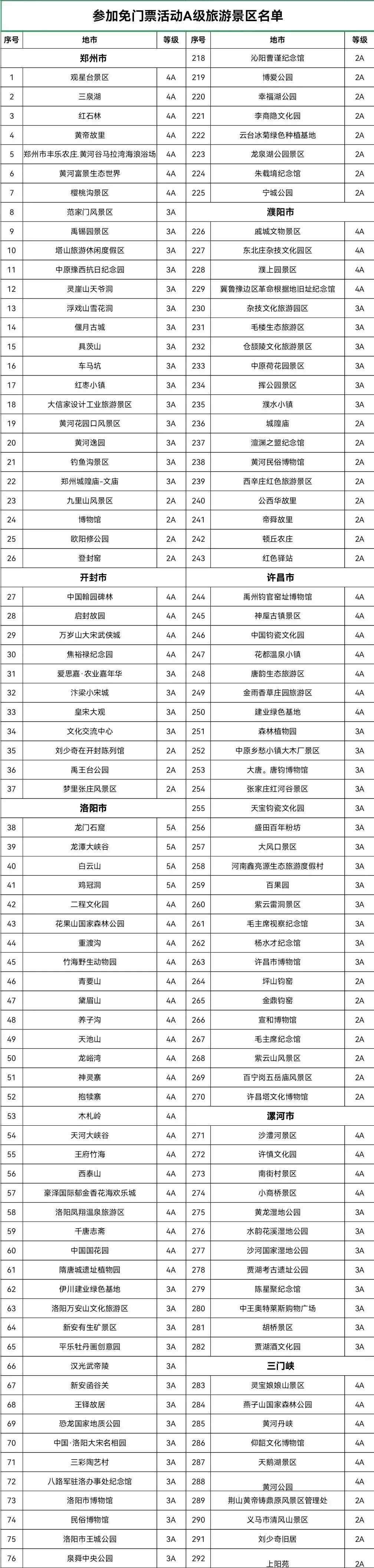 据介绍,此次活动免门票景区名单将在河南省文化和旅游厅官网上公布,门票免费,但不包含景区二次消费、景区内交通等费用。