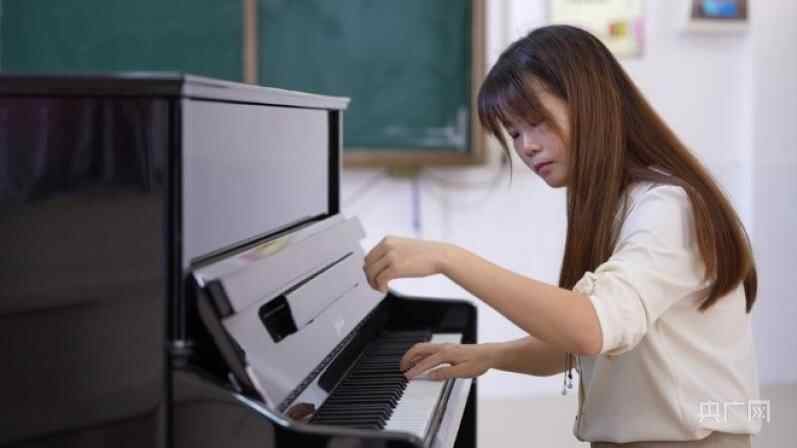 叶婉文在弹奏钢琴(央广网记者官文清摄)
