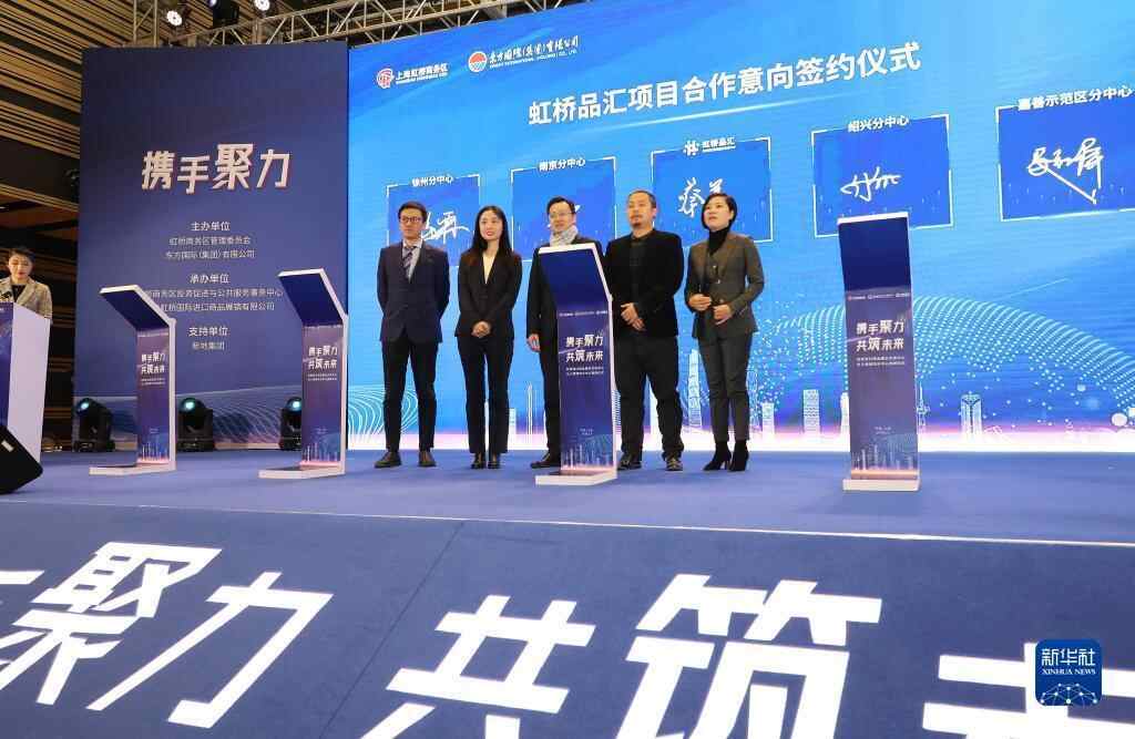 2020年12月30日,虹桥进口商品展示交易中心长三角城市分中心授牌仪式在上海虹桥进口商品展示交易中心举行,来自长三角城市分中心的代表在仪式上签署合作意向书。新华社记者 方喆 摄