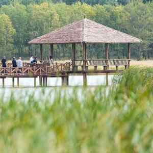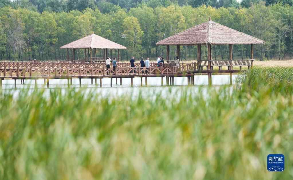 游客在吉林省松原市查干湖野鸭岛参观游览(9月18日摄)。新华社记者 许畅 摄