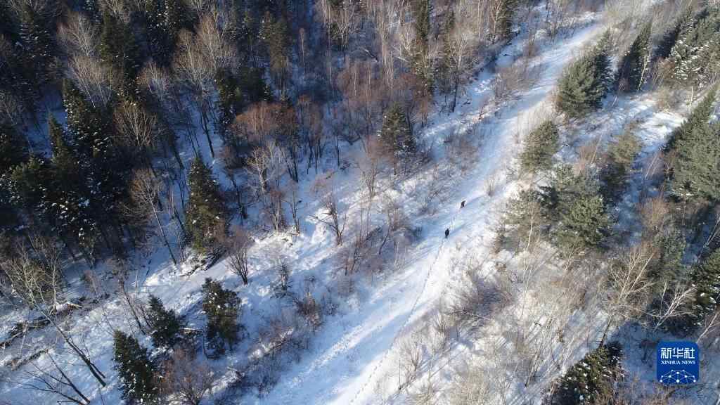2018年1月19日,东北虎巡护员张鑫(前)和陈建在东北虎豹国家公园黑龙江片区内巡护。东北虎豹国家公园体制试点区选址于吉林、黑龙江两省交界的广大区域,是我国重要的虎豹栖息地之一。新华社记者 王凯 摄