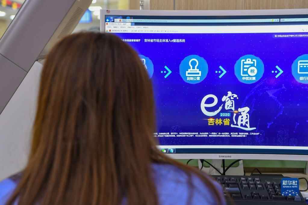 在吉林省四平市政务大厅,工作人员通过“e窗通”系统为企业负责人服务(2020年9月8日摄)。新华社记者 张楠 摄