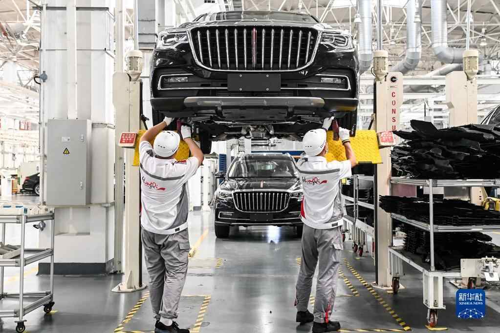 7月1日,工人在位于吉林长春的一汽红旗工厂总装车间内装配车辆。新华社记者 颜麟蕴 摄