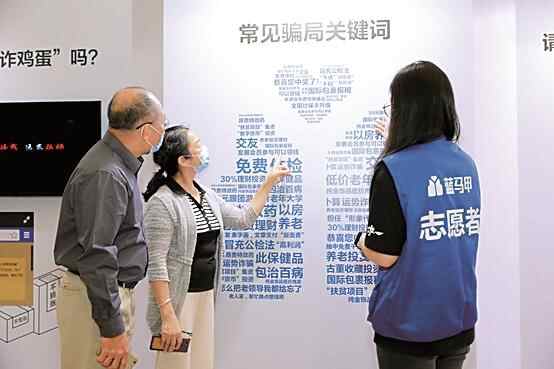 据了解,该展览在“反诈”板块设置了“防诈电话亭”“反诈案例集锦”“防诈视力表”“骗局关键词”“骗局正反面”等内容,可通过体验、图文、视频等多样化形式了解最新骗局; “助老板块”则设置了“智能手机小课堂”“老年人数字生活现状调研报告”“互动体验区”等区域,通过志愿者授课、现场演示、互动参与的方式让老人了解和体验数字生活技能。